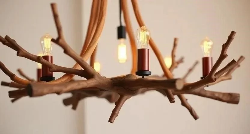 - Люстры из необычных материалов: ветки деревьев, кристаллы, старые велосипедные колеса – используйте нестандартные материалы, чтобы создать люстру, которая станет настоящим произведением искусства.
