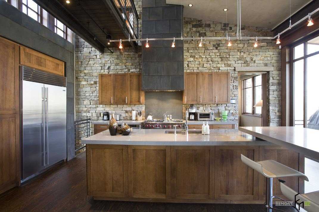 Отделка кухонной стены декоративным камнем в стиле лофт