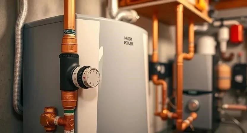 2. Установка котла: Подключение к газовой или электрической сети, установка дымохода.