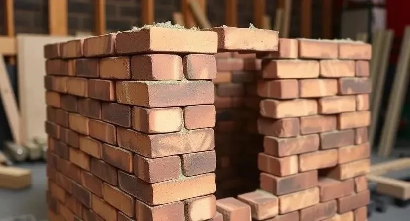 - Кладка первого ряда: Укладка кирпичей на цементно-песчаный раствор.