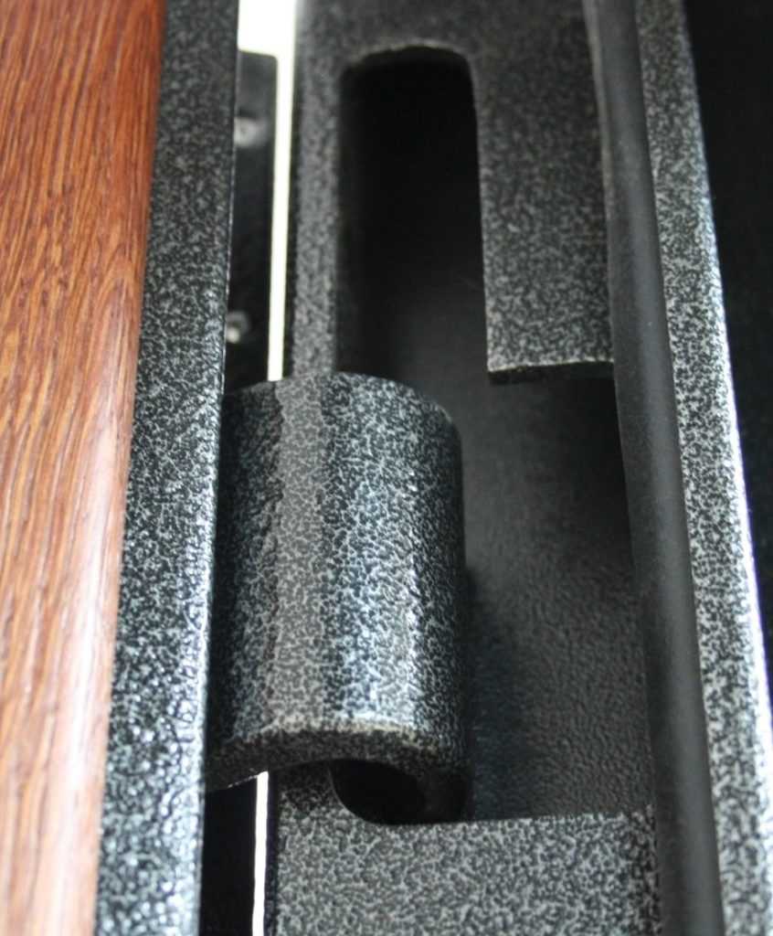 Чаще всего металлические двери продаются с петлями, так как устанавливать поворотный механизм на готовой двери в домашних условиях сложно. Если же приходится иметь дело с собранным коробом, отдают предпочтение простым наружным навесам.
