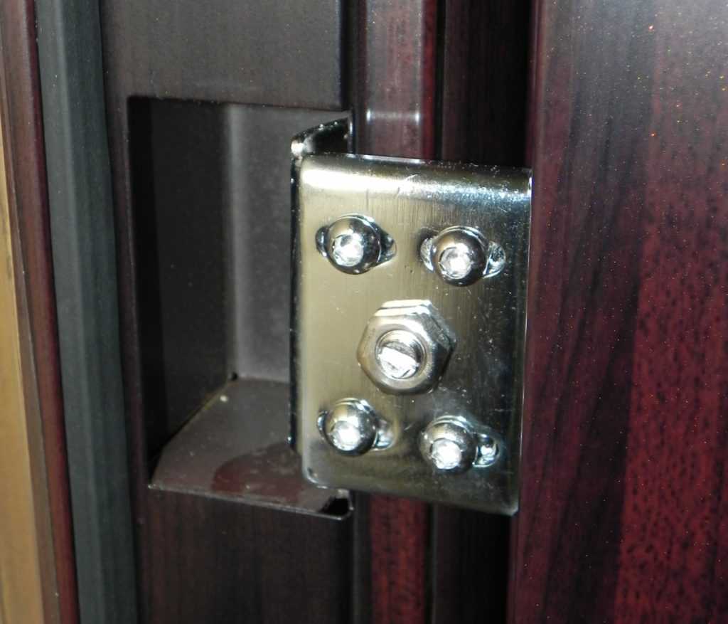 - Стальные. Самый надёжный и качественный вид крепления. Они не подлежат стачиванию, поэтому имеют длительный срок эксплуатации. Для сохранения эстетичного вида полотна их врезают в торец дверного короба. Углубление и конфигурация выемки соответствует толщине и форме пластин.