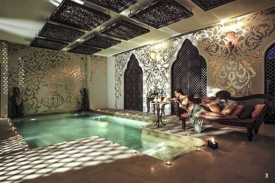 Пример отделки водной зоны в отеле Dhara Dhevi с использованием блестящей мозаики