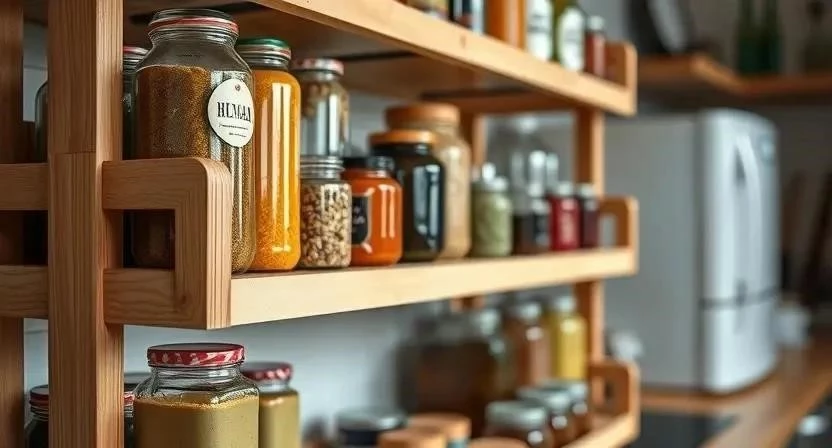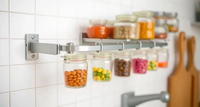 - Повесьте баночки со специями на держатели или крючки.