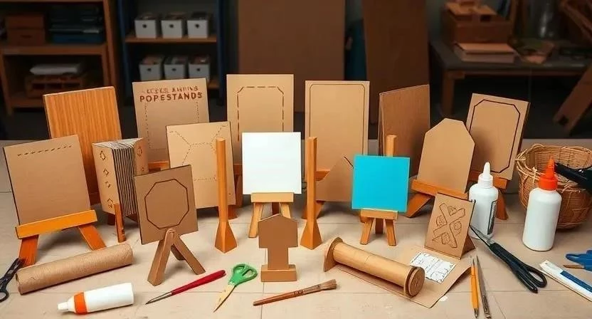 Это самый простой и бюджетный вариант. Я начинал с картона, когда только осваивал это ремесло. Для изготовления потребуется картон, ножницы, клей и линейка. Вырежьте из картона несколько деталей нужной формы и склейте их между собой, создавая устойчивую конструкцию. Можно сделать подставку в виде пирамиды, куба или любой другой фигуры. Время изготовления – около 30 минут.