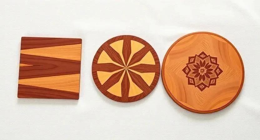 - Подставки с инкрустацией: Вставьте в деревянные подставки кусочки другого дерева или металла, создавая узоры.