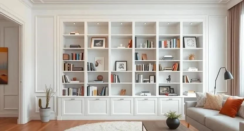 - Освещение: Подсветка полок может создать уютную атмосферу и выделить декоративные элементы.