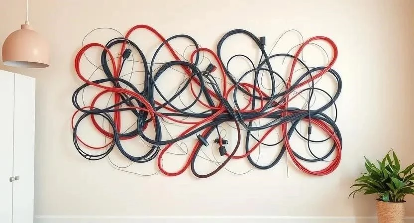 - Узоры: Создайте геометрические узоры на стенах, используя провода и шнуры.