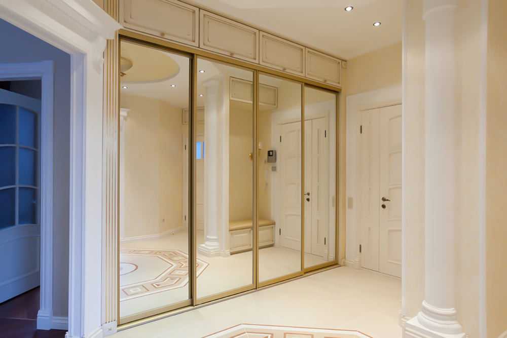 Для экономии места в прихожей можно закрепить зеркало на двери или превратить обычный угловой шкаф в купе, установив раздвижную систему.