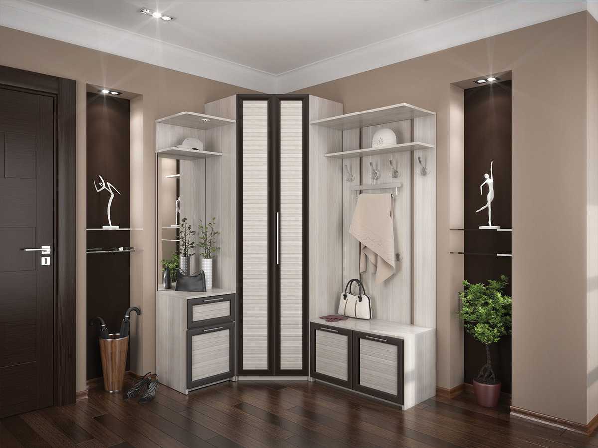 Даже в небольшом по площади коридоре должно хватить места для установки основных элементов прихожей: