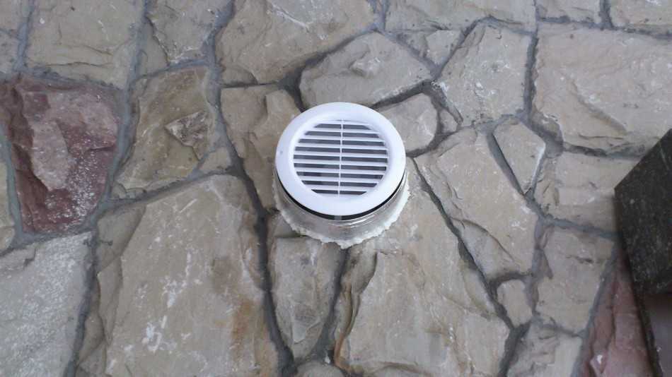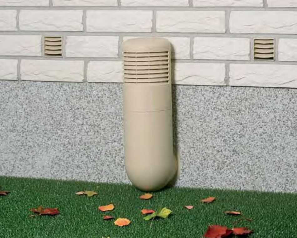 Нижний конец приточной трубы располагается на высоте примерно двадцати сантиметров от пола, тогда как вытяжная труба, нижний конец которой располагается на расстоянии тридцати сантиметров от потолка, находясь на противоположной стороне, вытягивает воздух из помещения. Система, состоящая из двух этих труб, обеспечивает постоянную циркуляцию воздуха в цоколе.