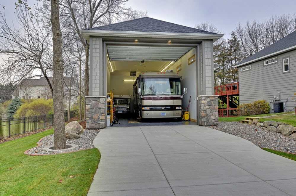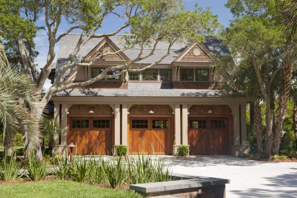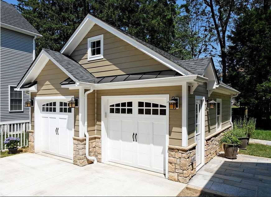 Автономный гараж на две машины не должен быть слишком большим, чтобы не доминировать над домом.