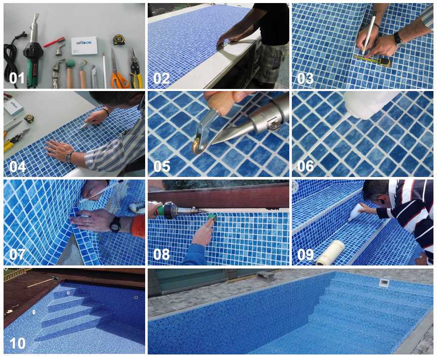 Осталось только заполнить бассейн водой и проверить новое покрытие. Теперь ваш бассейн готов для полноценного использования. Для выполнения работы вам потребовались следующие инструменты: