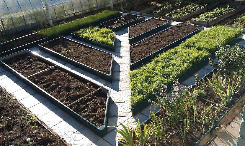 Оптимальный размер дорожки между рядами – от 20 до 50 см, но лучше остановиться на 40 см. От грязи тропинки защищают опилками, щебнем или засеивают газонную траву. Если по краям поставить бордюры, то земля не осыпается. При планировке огорода длина грядок зависит от требований владельца и особенностей дизайна ландшафта. Традиционные параметры – от 5 до 10 м.