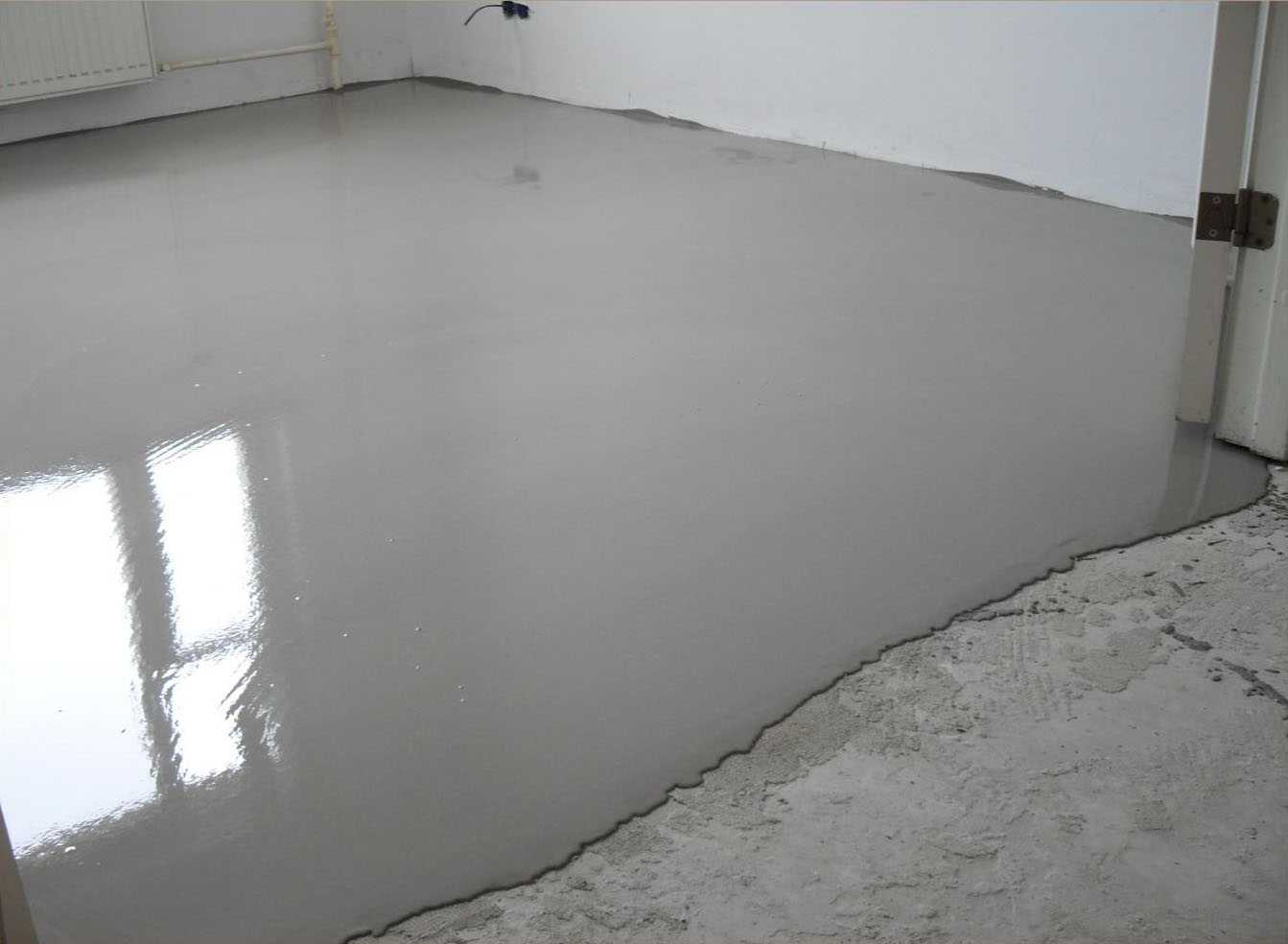 В принципе, подготовительные работы окончены. Остается лишь развести сухую смесь водой в пропорции, которая указана в инструкции к материалу, и залить пол. Специалисты рекомендуют взять щетку на длинной ручке и мягким нажатием на уже залитый пол «выдавить» из смеси пузырьки воздуха.