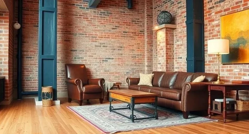 - Лофт: Открытые кирпичные колонны или колонны, имитирующие бетон.