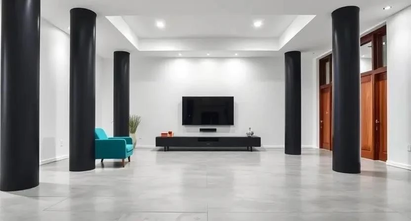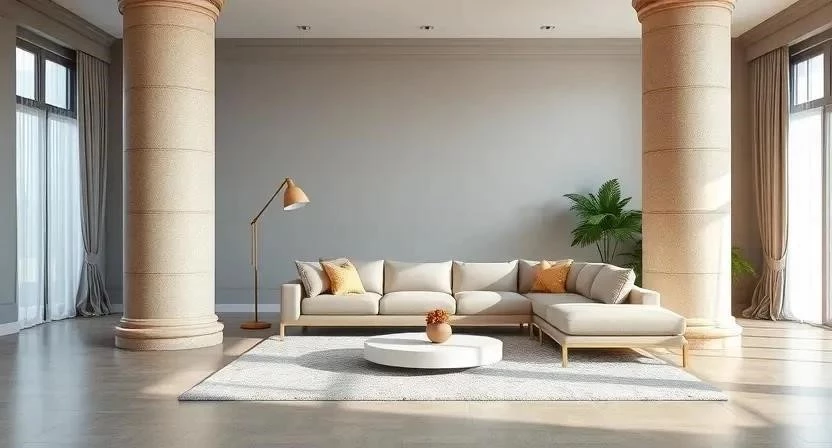 - Современный стиль: Колонны, окрашенные в нейтральные цвета, с минималистичной мебелью.