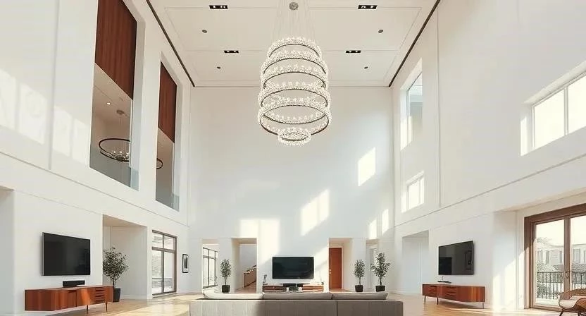 Вопрос: Как правильно выбрать освещение для гостиной с высокими потолками?