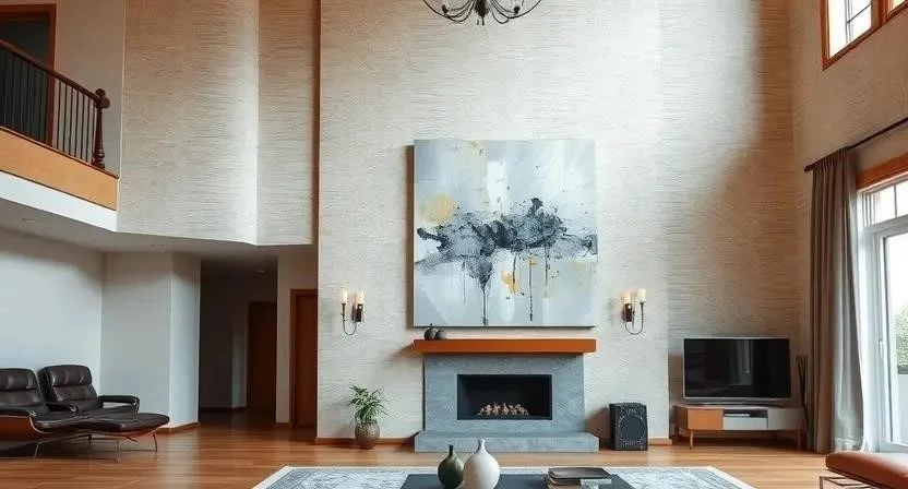 Вопрос: Какие материалы лучше использовать для отделки стен в гостиной с высокими потолками?