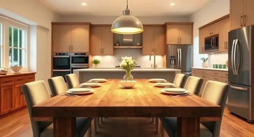 - Обеденная зона: Выбор стола и стульев зависит от размера кухни и количества членов семьи. Для большой семьи подойдет большой прямоугольный или овальный стол.