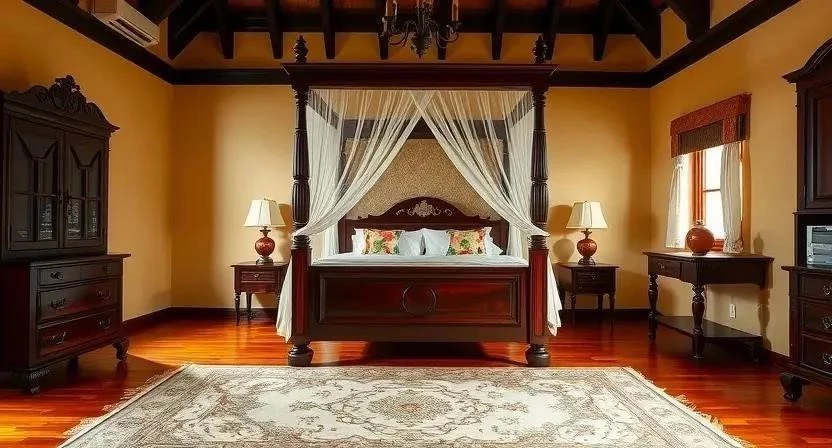 Вопрос: Как создать атмосферу уюта в спальне в колониальном стиле?