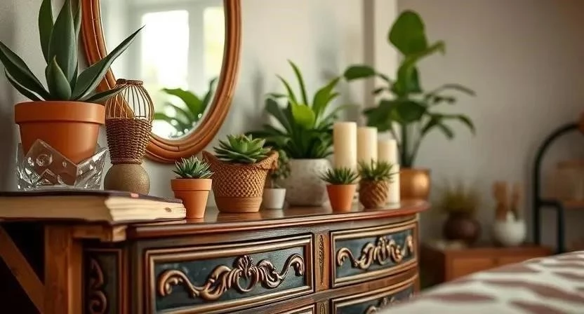 Декор и аксессуары – это то, что делает интерьер в стиле бохо-шик уникальным и неповторимым. Растения в горшках добавят комнате свежести и жизни. Картины, зеркала и фотографии украсят стены и создадут уютную атмосферу. Свечи и подсвечники добавят романтики и тепла. Статуэтки, вазы и другие декоративные элементы подчеркнут вашу индивидуальность. Я всегда привожу сувениры из путешествий и использую их для украшения дома – это делает интерьер более личным и интересным.