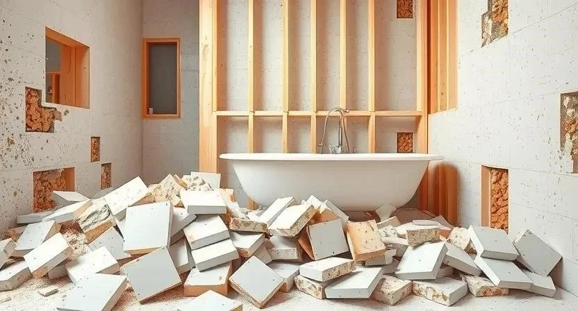 - Шаг 1. Демонтаж: Удаление старой плитки, сантехники, дверей. Подготовка помещения к новым работам. Занимает около 1-2 дней.