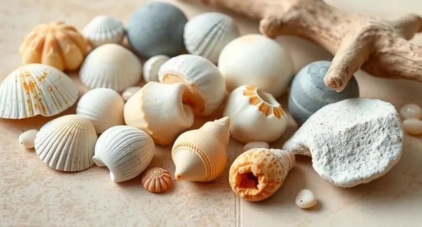 Ответ: Ракушки, морские звезды, кораллы, картины с морскими пейзажами, зеркала в рамах, имитирующих ракушки.
