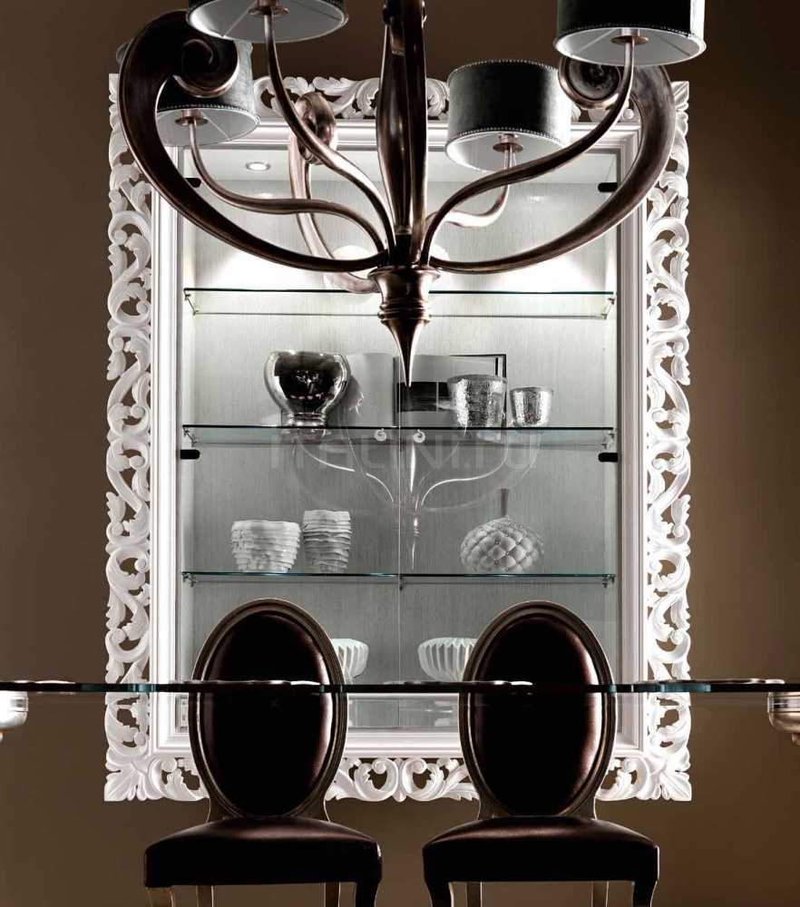 - пристенный — классические витрины располагаются возле стены. Таким образом удается сэкономить пространство в помещении и расставить другую мебель. Для удачного обзора производители оснащают шкафы зеркальными стенками, создающими эффект объема. Доступ к посуде осуществляется с фасада шкафа;