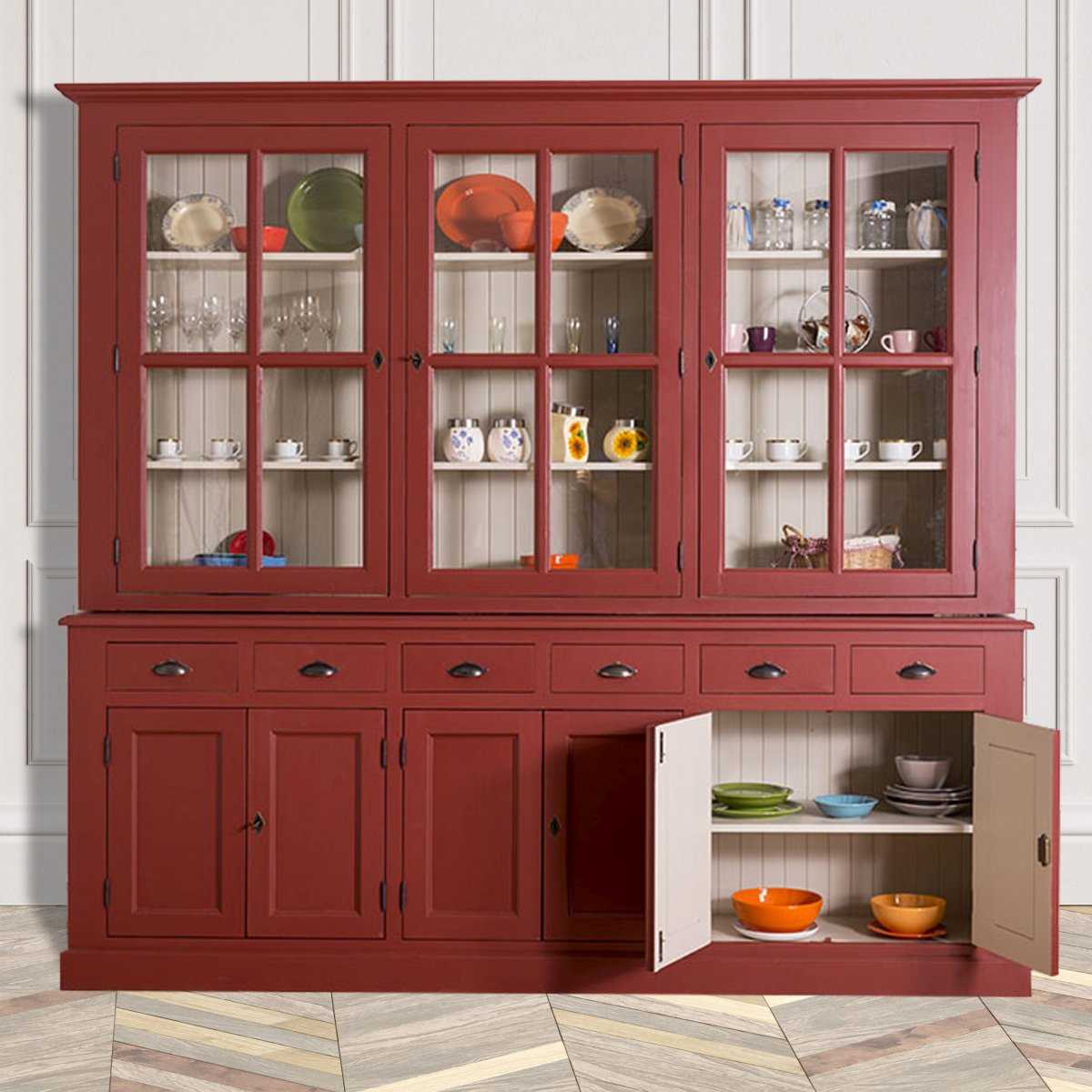 В традиционном дизайне может быть также красив в гостиной и без наличия стеклянных створок. В нем можно также хранить дополнительные комплекты посуды для гостей, салфетки и другой кухонный инвентарь.
