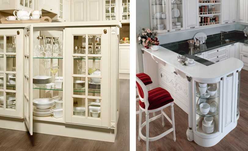 Конструктивные разновидности шкафов для хранения посуды на кухню