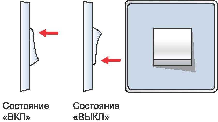 В России принято, чтобы состояние «выключено» было при нажатом нижнем крае клавиши. Такая традиция идет из требования правил, чтобы коммутационный элемент не мог включиться под действием собственной тяжести. Это относится, скорее, к рубильникам, но принцип устоялся. Другая версия — правило идет из условия, что в критической ситуации человек должен иметь возможность отключить напряжение действием тяжести своего тела. В любом случае, это сила привычки. В некоторых странах принят прямо противоположный стандарт, и на реальную работу системы освещения это не влияет.