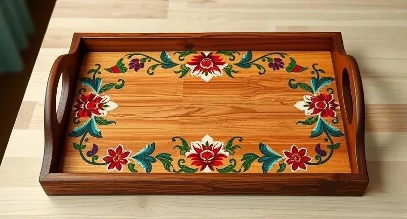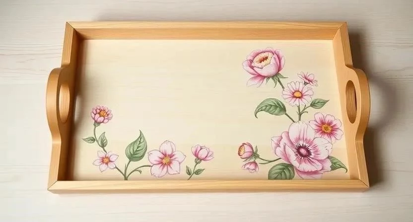 Декупаж – это техника декорирования, которая позволяет создавать красивые узоры на поверхности подноса с помощью салфеток или декупажных карт. Выбирайте салфетки с интересным рисунком, который будет соответствовать вашему интерьеру. Нанесите клей для декупажа на поверхность подноса, аккуратно приклейте салфетку, разгладьте ее, чтобы не было складок. После высыхания клея покройте поднос финишным лаком. Важно использовать специальный клей для декупажа, чтобы салфетка не отклеивалась.