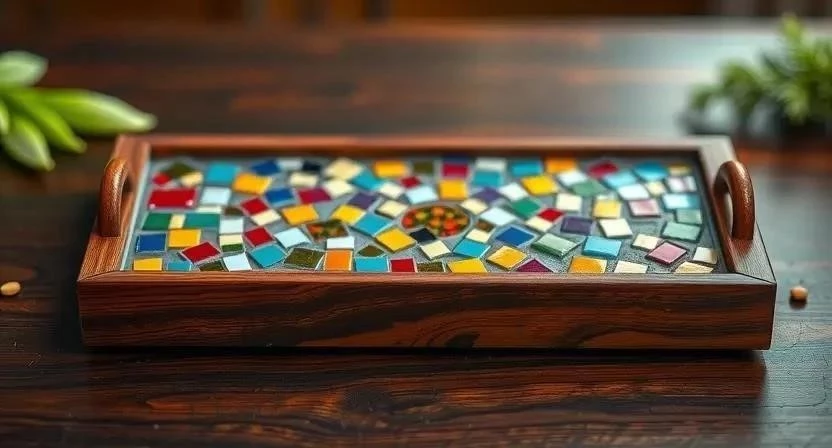 Мозаика – это более сложная техника декорирования, но результат того стоит. Выберите мозаику из стекла или керамики, раскладывайте элементы на поверхности подноса, создавая желаемый узор. Закрепите элементы клеем для мозаики, а затем затрите швы затиркой. Важно использовать клей, который подходит для мозаики, чтобы элементы не отваливались. После высыхания затирки протрите поднос влажной тряпкой.