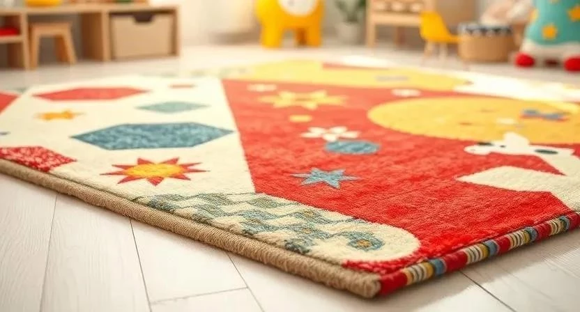 - Ковры: делают комнату более теплой и уютной, а также служат безопасной игровой поверхностью. Выбирайте ковры с коротким ворсом, которые легко чистить.