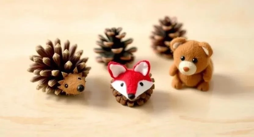 Из шишек можно сделать забавных зверюшек, которые станут отличным украшением детской комнаты.
