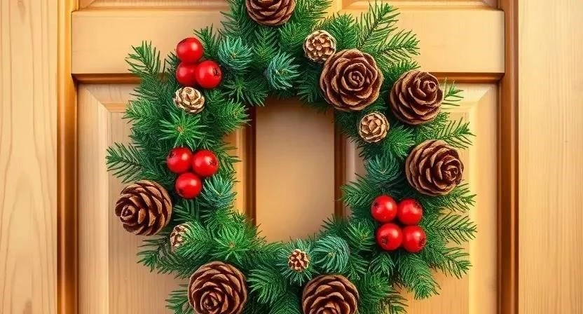 3. Создайте новогоднюю композицию из шишек, еловых веток и других декоративных элементов.