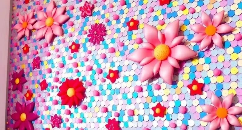 - Пайетки в фотозоне: Создание яркой и запоминающейся фотозоны с использованием пайеток. Можно сделать фон из пайеток или украсить реквизит.