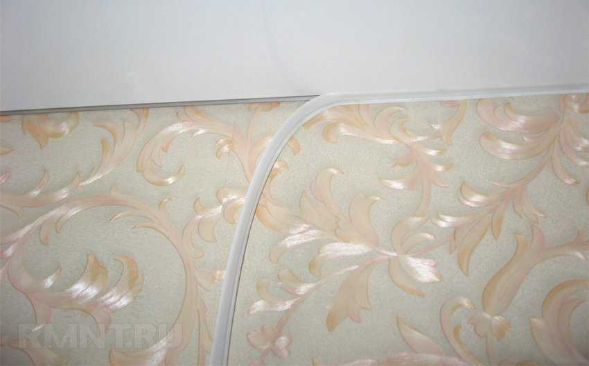 При монтаже звукоизоляции потолка важно не только плотно стыковать элементы самого изолятора, но и добиться минимального взаимодействия со звукоизоляцией стен. Натяжной потолок позволяет возводить фальш-облицовку стен не под самый потолок и этим преимуществом нужно пользоваться.. Чтобы быть уверенным, что в угловом примыкании стены к потолку не останется пространства для свободного распространения воздушного шума, края потолочной звукоизоляции нужно завернуть и завести в скрытую плоскость чуть ниже уровня натяжного покрытия.