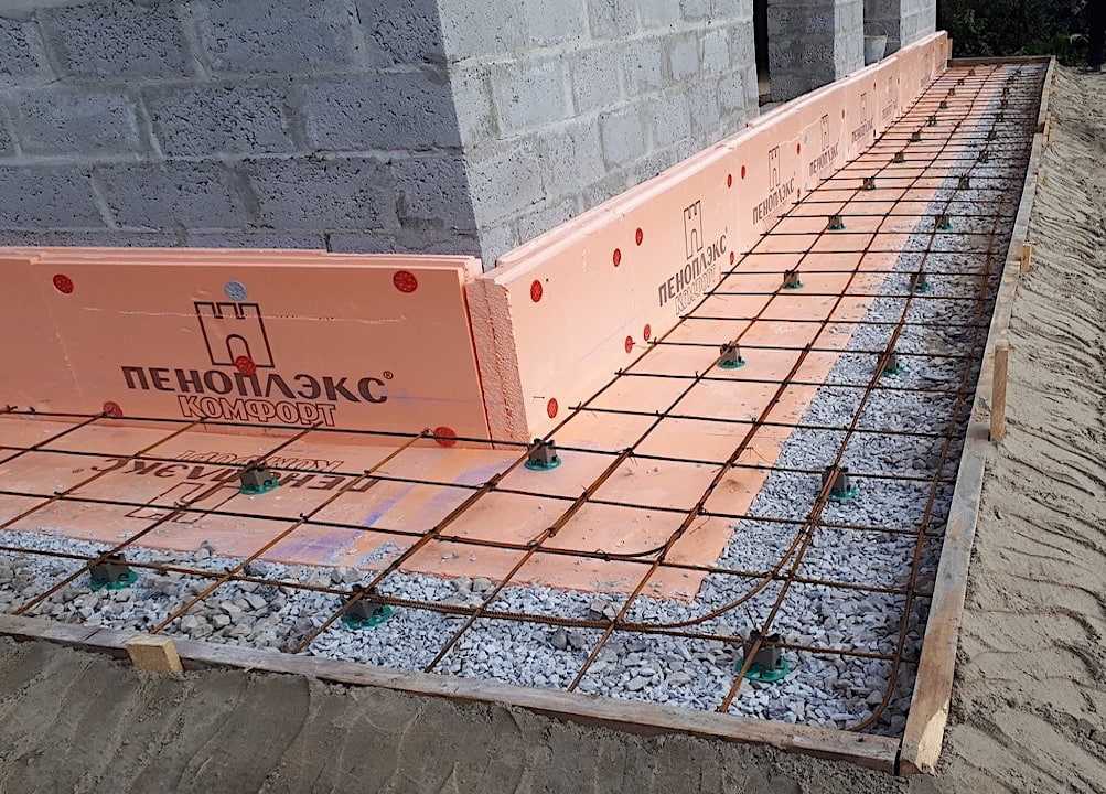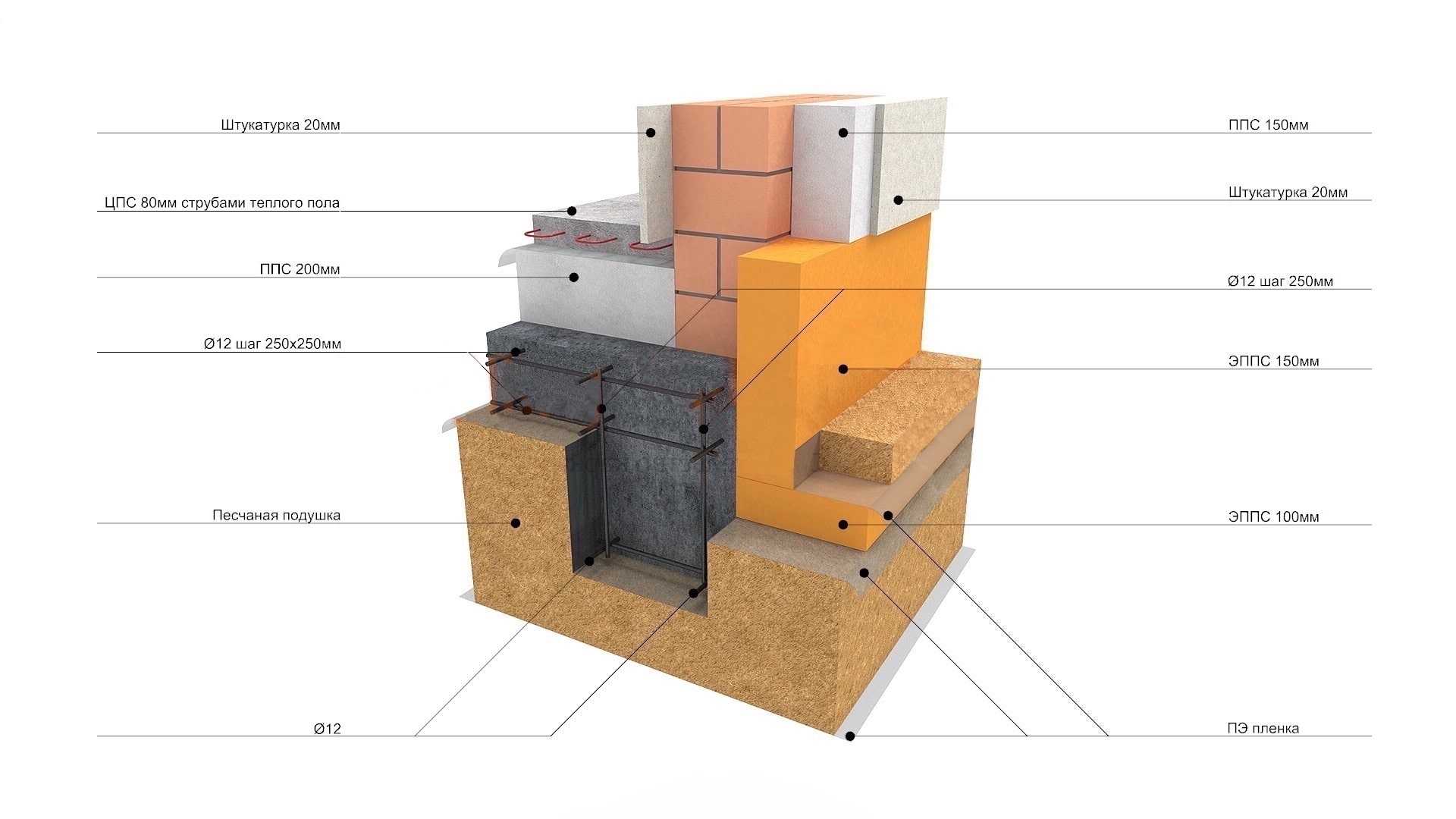- Сокращение утечек тепла через основание к минимуму, обеспечение надежной защиты от сырости, промерзания и пучения грунта.