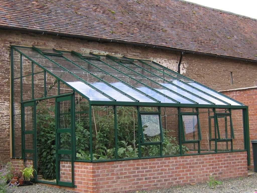 - односкатные — конструкции с глухой северной стеной, обычно возводятся как пристройки к жилым или хозяйственным постройкам, предназначены для небольшого количества растений;