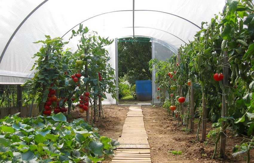 Ширина дорожки внутри теплицы — не менее 50 см и не более одного метра. Оптимальный вариант — 0,6-0,7 м.