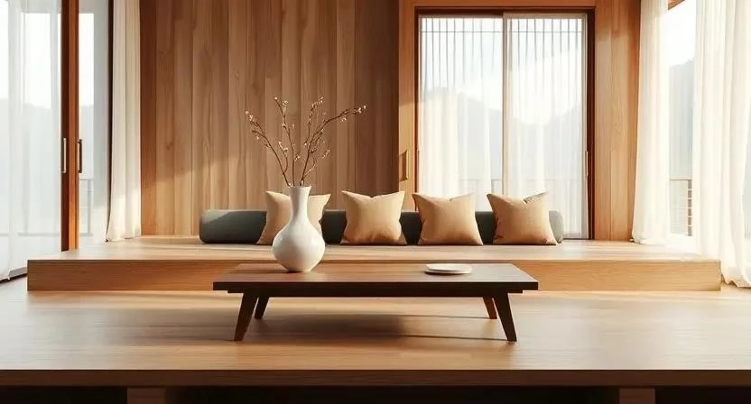| Джапанди | Слияние японского минимализма и скандинавского уюта | Деревянная мебель, льняные шторы, приглушенные тона |