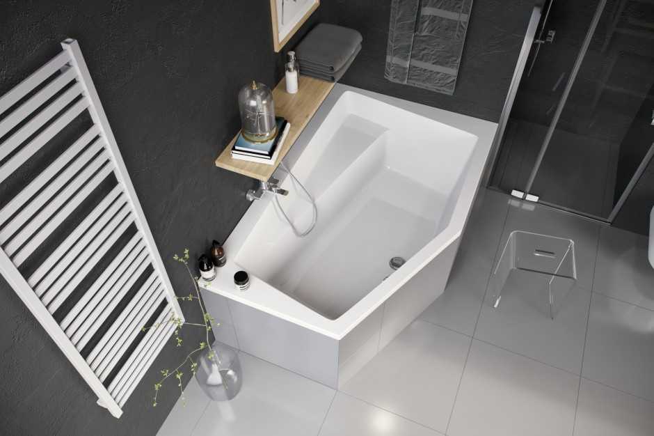 Относительно новинкой на рынке сантехники можно назвать асимметричные ванны из акрила. Однако, благодаря своим эксплуатационным качествам, акриловая ванна сегодня, пожалуй, даже более популярна, чем чугунная. Среди основных достоинств этих моделей: