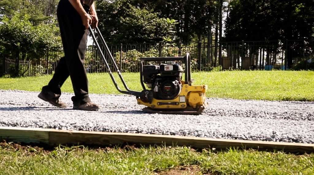 Уплотнение щебня виброплитой