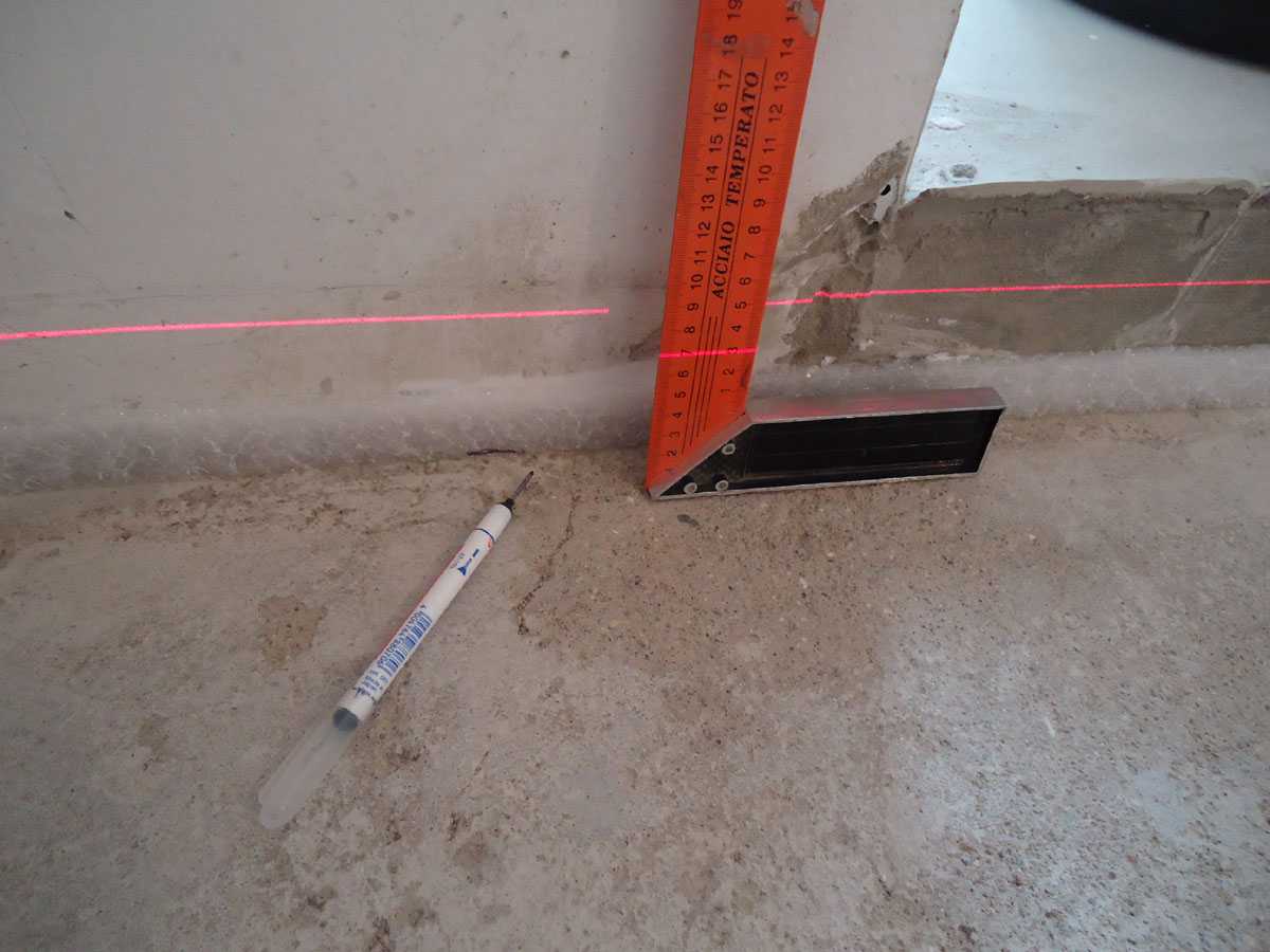 Сначала необходимо оценить значительные дефекты и установить лазерный уровень для штукатурки стен так, чтобы лазер лежал параллельно нижней границе стены.