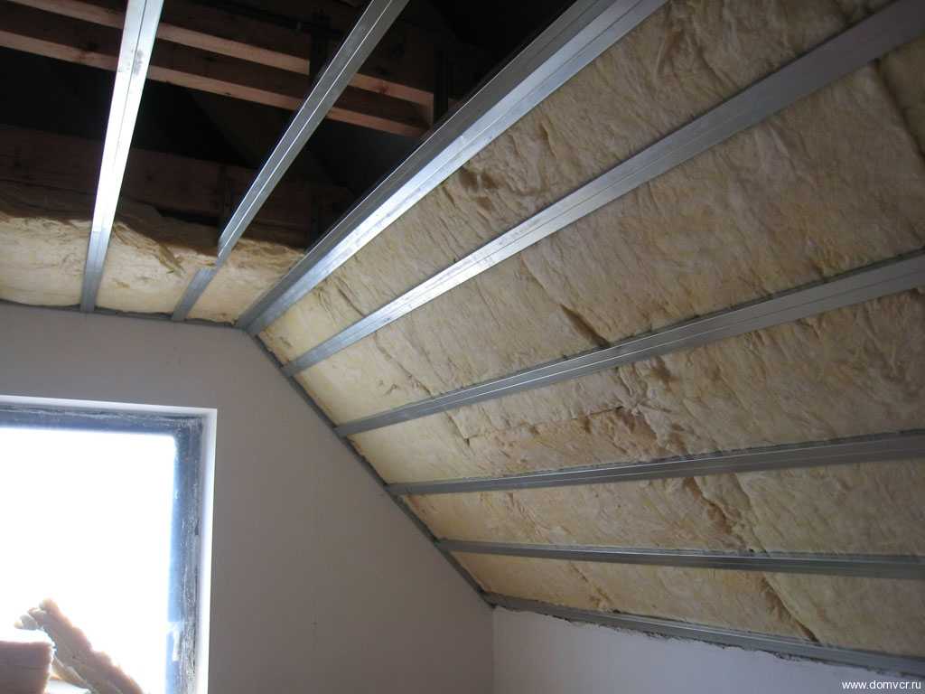 Данная технология утепления потолка в частном доме требует формирования обрешетки.