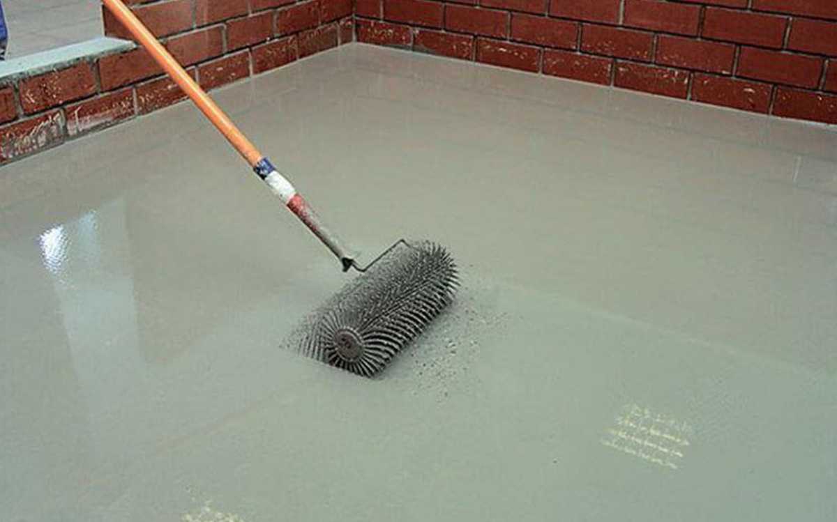 Отремонтированную и тщательно очищенную поверхность грунтуют специальным составом глубокого проникновения. Грунт наносят в 2–3 слоя, давая каждому слою хорошо просохнуть. Через 5-6 часов после нанесения последнего слоя грунтовки можно приступать к приготовлению раствора и заливке пола.