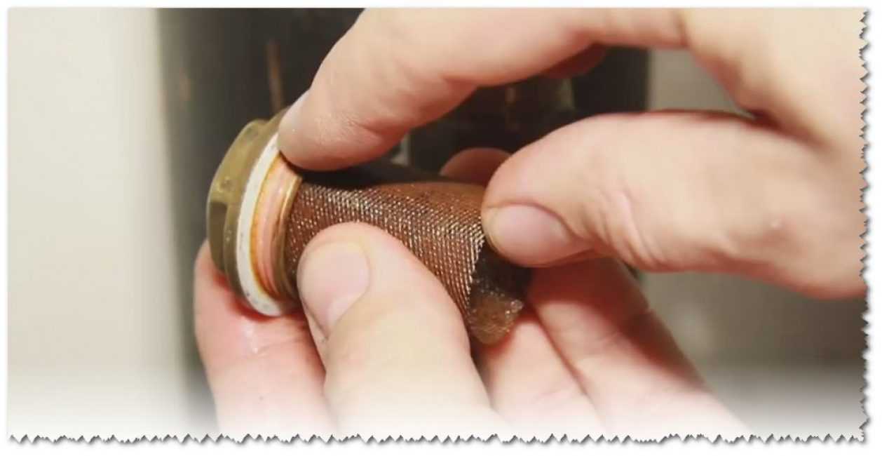 Разбираем фильтр – вынимаем из гайки цилиндрическую сетку.