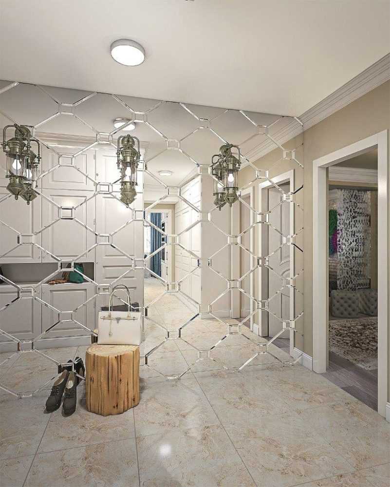 Зеркальная стена сделает зрительно расширит узкий коридор